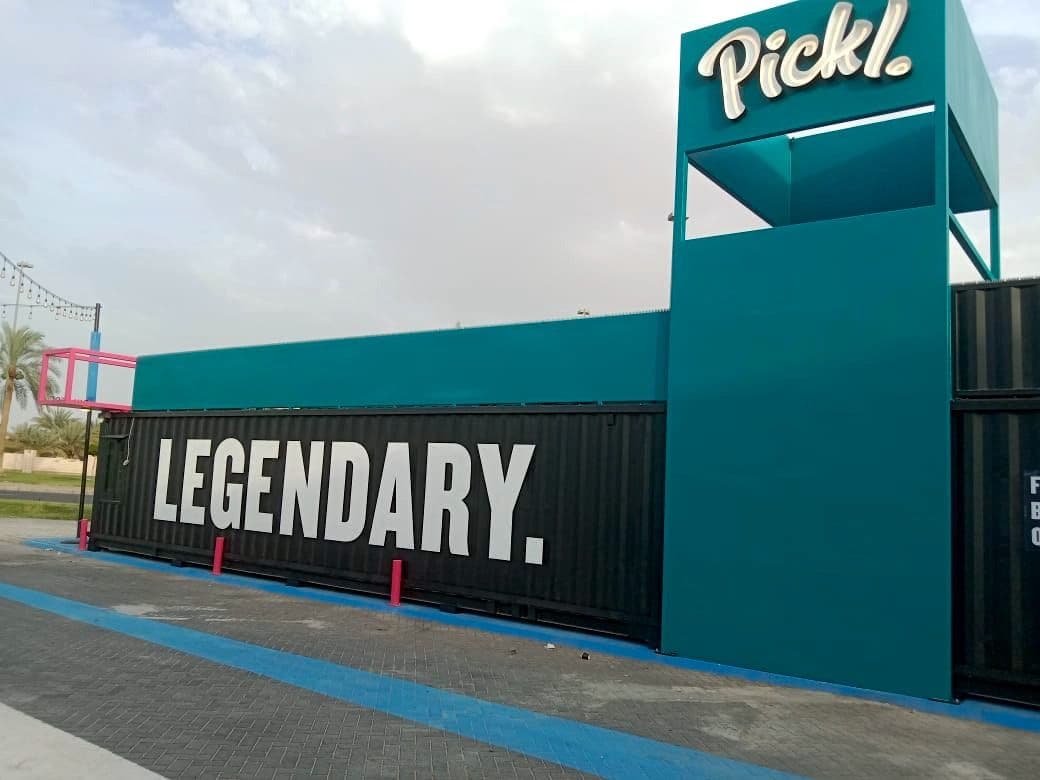 The Burger Joint of Pickl outlet, a drive-through restaurant in Al Ain, Abu Dhabi. This project utilized 2x 40ft containers to create a dynamic and efficient space for Pickl, delivering delicious burgers in a stylish and functional setting.